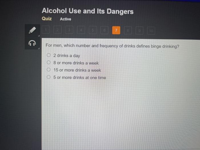 Solved Alcohol Use And Its Dangers Quiz Active 3 Time Rem Chegg Com - Binge drinking is a pattern of drinking behavior that rapidly brings a person's blood alcohol concentration level (bac) to 0.80 g/dl or higher.